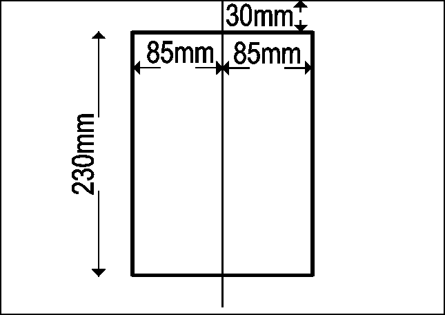 | Step 2. Draw a vertical line 290 mm. long down the centre of the page along the fold line. |